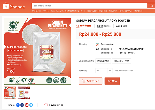 過碳酸鈉的英文sodium percarbonate, 直接打就能看到好多買家都有賣